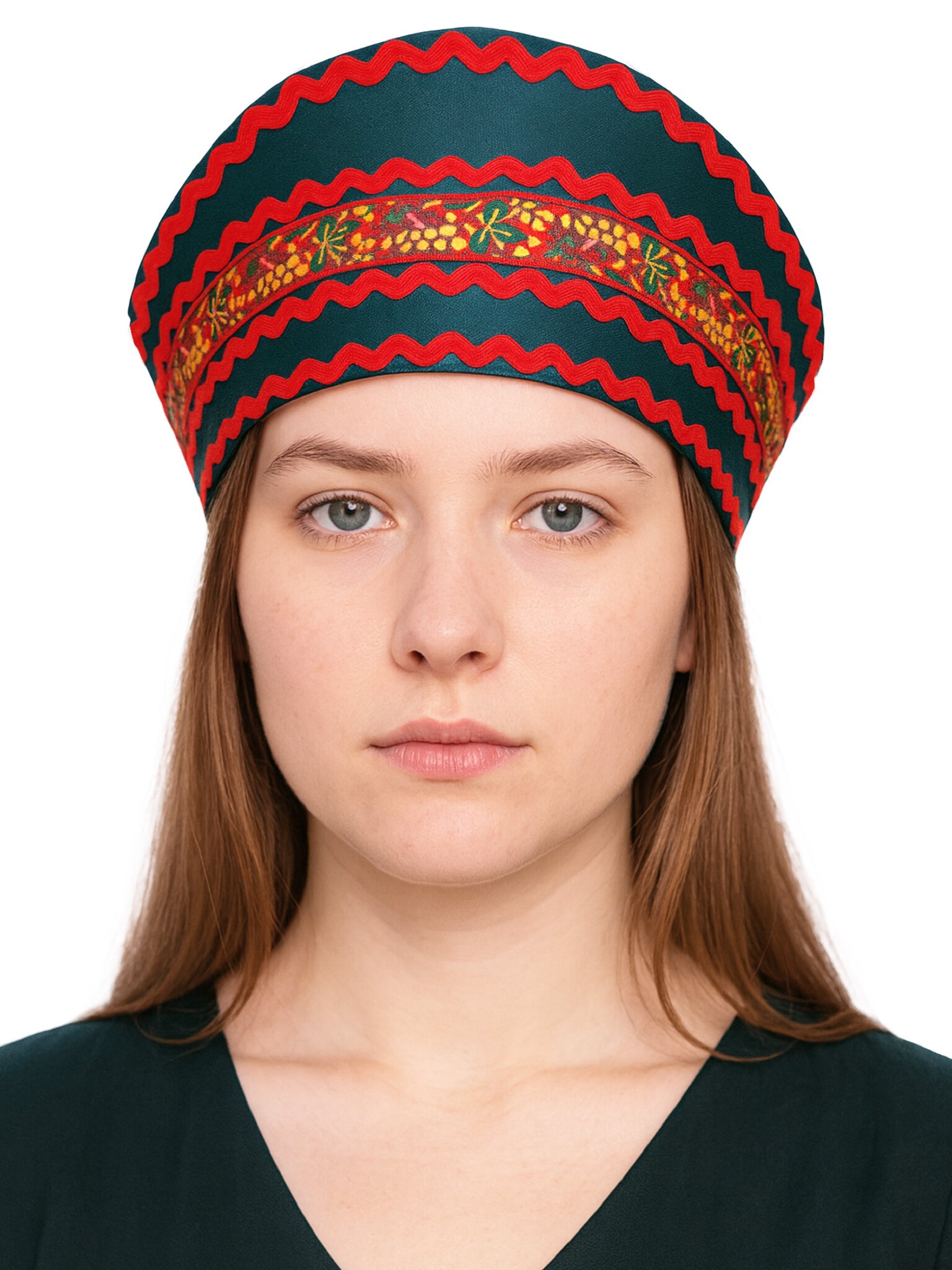 Кокошник "Радуга" зеленого цвета с яркой красной тесьмой - идеальное решение для украшения головы взрослой женщины. Изготовлен из прочной и качественной тесьмы. Подходит как для ретро-вечеринок и национальных праздников, так и для создания образа русской княгини. Полностью соответствует духу исторических и национальных традиций. Выполнен в ярких и праздничных цветах - красном и зеленом. Безупречно сидит на голове благодаря своей конструкции кокошника. Произведен в России. Будьте элегантны и уникальны с кокошником "Радуга"!